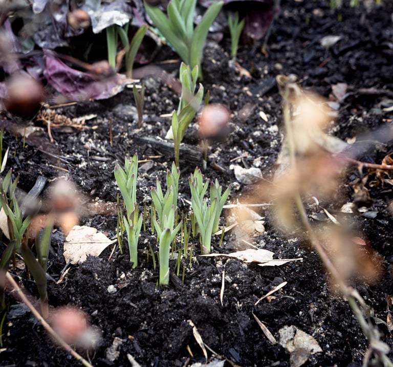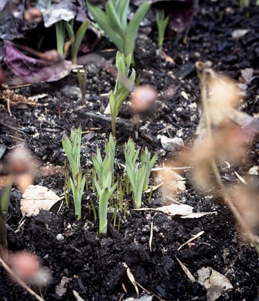 In the garden: crocuses blooming,