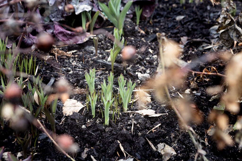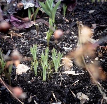 Spring is late this year. Or... maybe it was just early last year. My tulips were up an inch and a half in the kitchen window bed by mid-March in 2025, and today only the tips are poking up. That’s an entire month later!